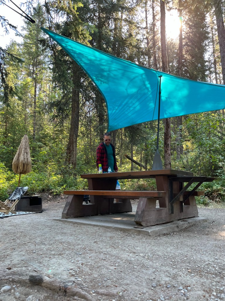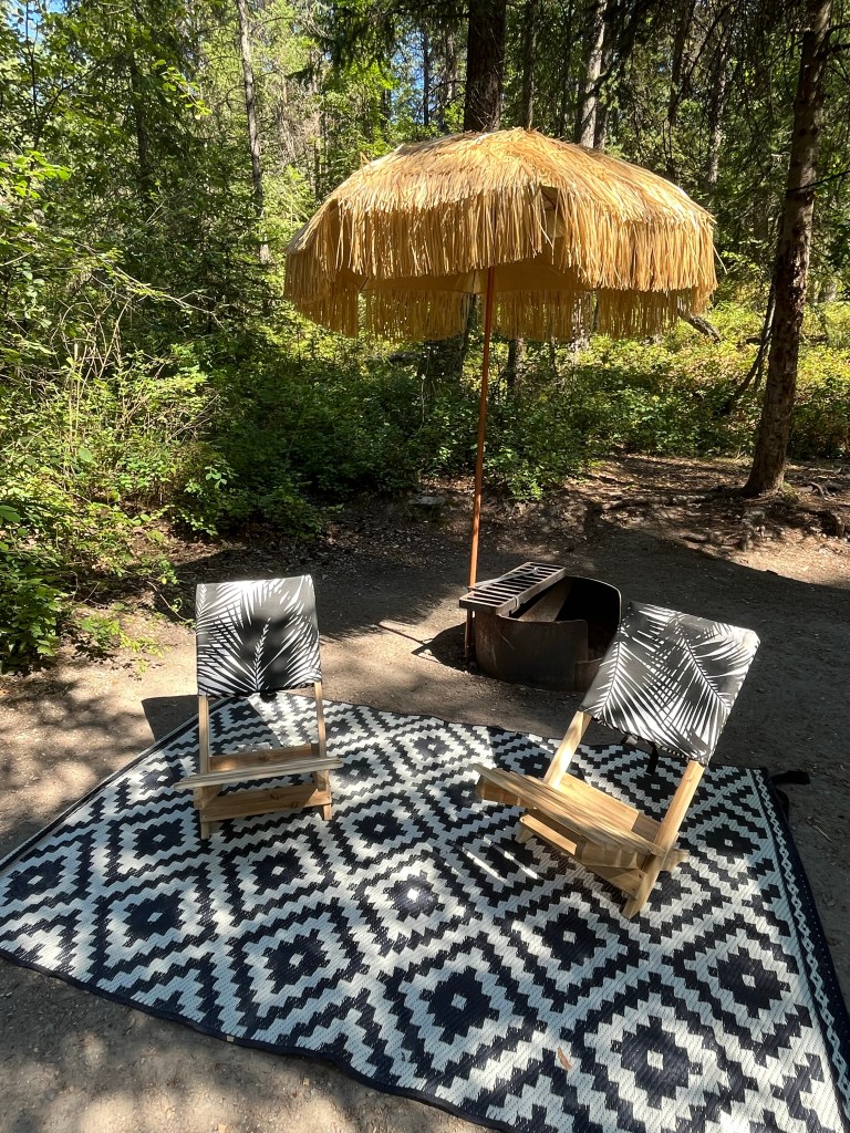 Next up, the Tiki Bar! Given the fact that there is currently a fire ban, we needed somewhere fun to gather! So we fastened our ‘funbrella’ to the fire pit and set up shop accordingly. Margarita anyone?