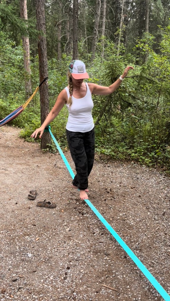 Finally, the slack line! Such a great little addition to any campsite! Balance training anyone? If you are looking to up your game in this department, a slack line is definitely the answer. It’s challenging, but so much fun.