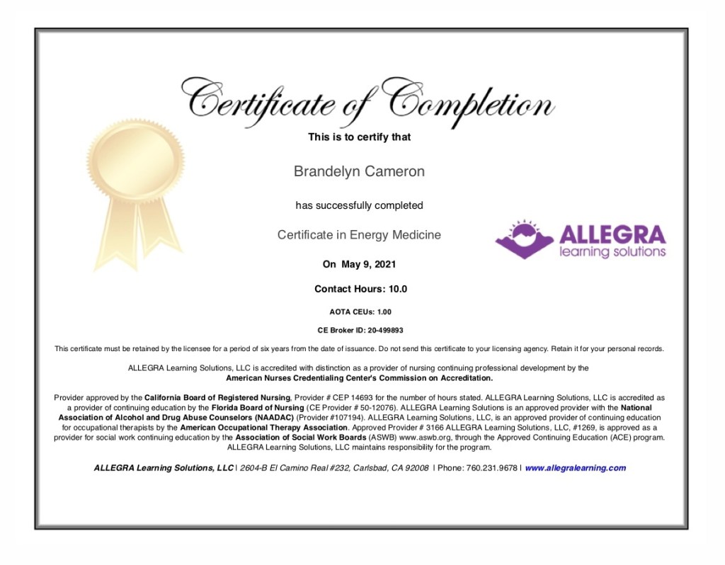 Brandelyn is a Mind-Body Wellness Coach and Yoga instructor in Calgary, Alberta that completed her Certificate in Energy Medicine in 2021. She uses a variety of modalities such as a FAR infrared PEMF healing mat, Reiki, guided meditation, aromatherapy and sound healing to help her clients achieve a sense of balance.