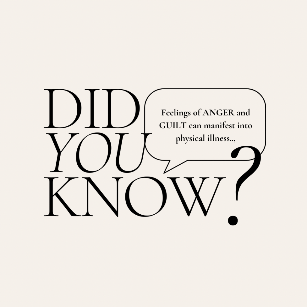To further understand the impact that holding on to emotions such as anger and guilt has on our physical wellbeing, check out our previous post: