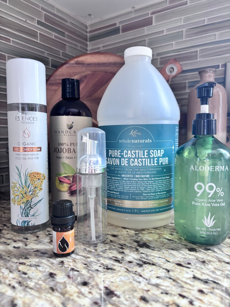 Here’s a simple, gentle foaming face wash you can make at home using liquid Castile soap: